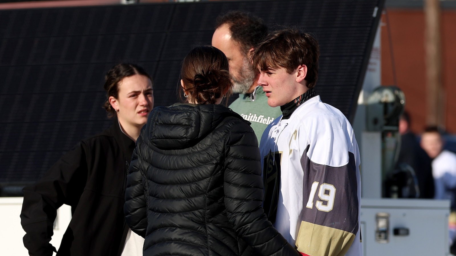 The ripple effects of this violence extended far beyond those directly shot. The superintendent of one of the schools whose team was playing at the arena at the time of the shooting sent a message to anxious parents, assuring them that all students on the team were physically safe—though the psychological impact of witnessing such violence will likely last far longer than any physical injuries. Rhode Island Governor Dan McKee took to social media to express his concern, writing, “I am praying for Pawtucket and everyone involved,” a sentiment that echoed throughout the state and beyond. The image of parents and players congregating near the arena in the aftermath, as captured by photographers on the scene, tells a story of a community in shock, trying to process the incomprehensible. These were people who had come to watch a hockey game, to support young athletes, to enjoy a normal winter afternoon—and instead found themselves living through a nightmare. In the days and weeks ahead, this community will need to come together to support the victims’ families, to provide counseling for those who witnessed the violence, and to begin the long process of healing. The Dennis M. Lynch Arena, which should be a place of joy and community connection, will forever be marked by this tragedy, but how the community responds—how they support one another, remember the victims, and work to prevent future violence—will ultimately define this moment in their history.