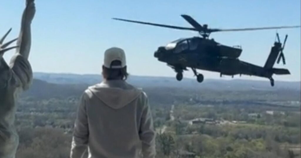 The controversy began over the weekend when Kid Rock, whose real name is Robert Ritchie, posted videos on social media showing two AH-64 Apache helicopters making what appeared to be an unscheduled visit to his property. The footage, which quickly went viral, showed the singer standing poolside next to a replica of the Statue of Liberty, saluting the pilots as one helicopter hovered nearby before flying away. In another video shot from a different angle, Kid Rock could be seen enthusiastically pumping his fist at the first helicopter while a second aircraft followed close behind. The helicopters were reportedly from Fort Campbell, a major Army installation located near the Tennessee-Kentucky border that is home to the legendary 101st Airborne Division. According to military officials who spoke before Hegseth’s intervention, the aircraft had been on a training mission when they deviated from their planned route to fly near Kid Rock’s residence and, reportedly, a “No Kings” protest happening in the area.